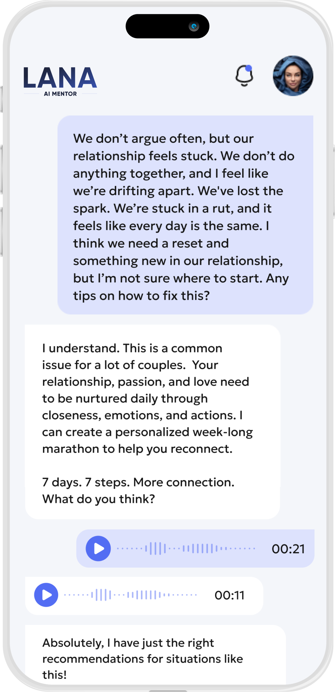 This is a true treasure! AI Mentor LANA is a friend that was once only imaginable, but now it's real 🔥🔥🔥 This is the app women need and are looking for! 🔥🔥🔥🔥